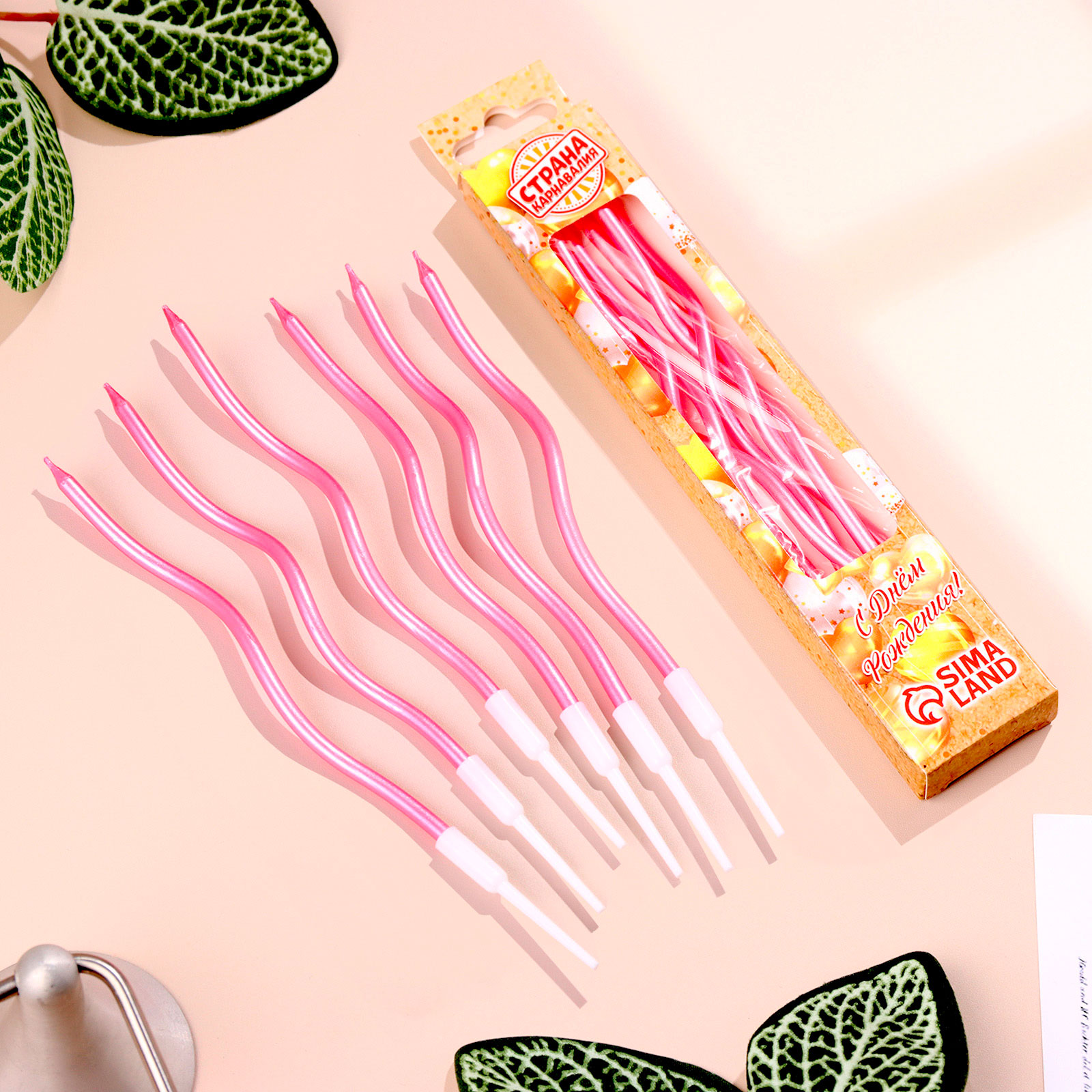 Свечи "Серпантин" для торта, розовый блик, 6шт/уп